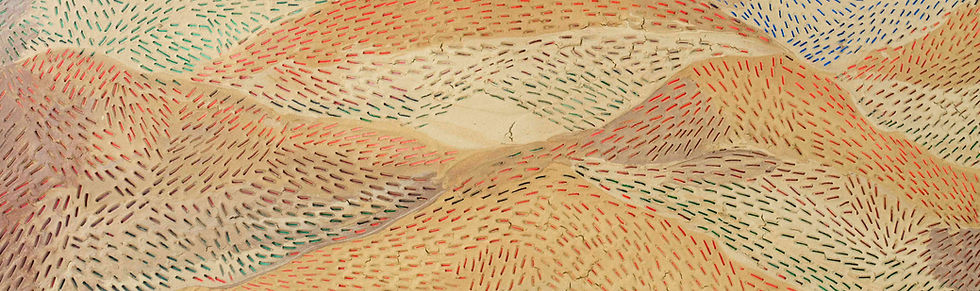In Julia A. Etedi's work, this relationship with nature is even more instinctive. Evoking cartographies of vibratory landscapes, her works seek to pictorially translate the invisible movements of nature. Inspired by the seasons and natural cyclical rhythms, the artist positions herself as a witness collecting fragments of these variations to preserve their memory.